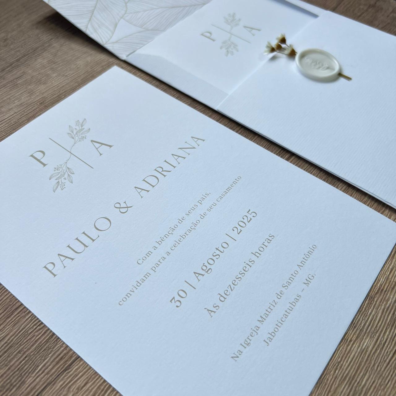 * Convite com envelope Verge 180g com interior forrado (formato 15 x 20cm = fechado)